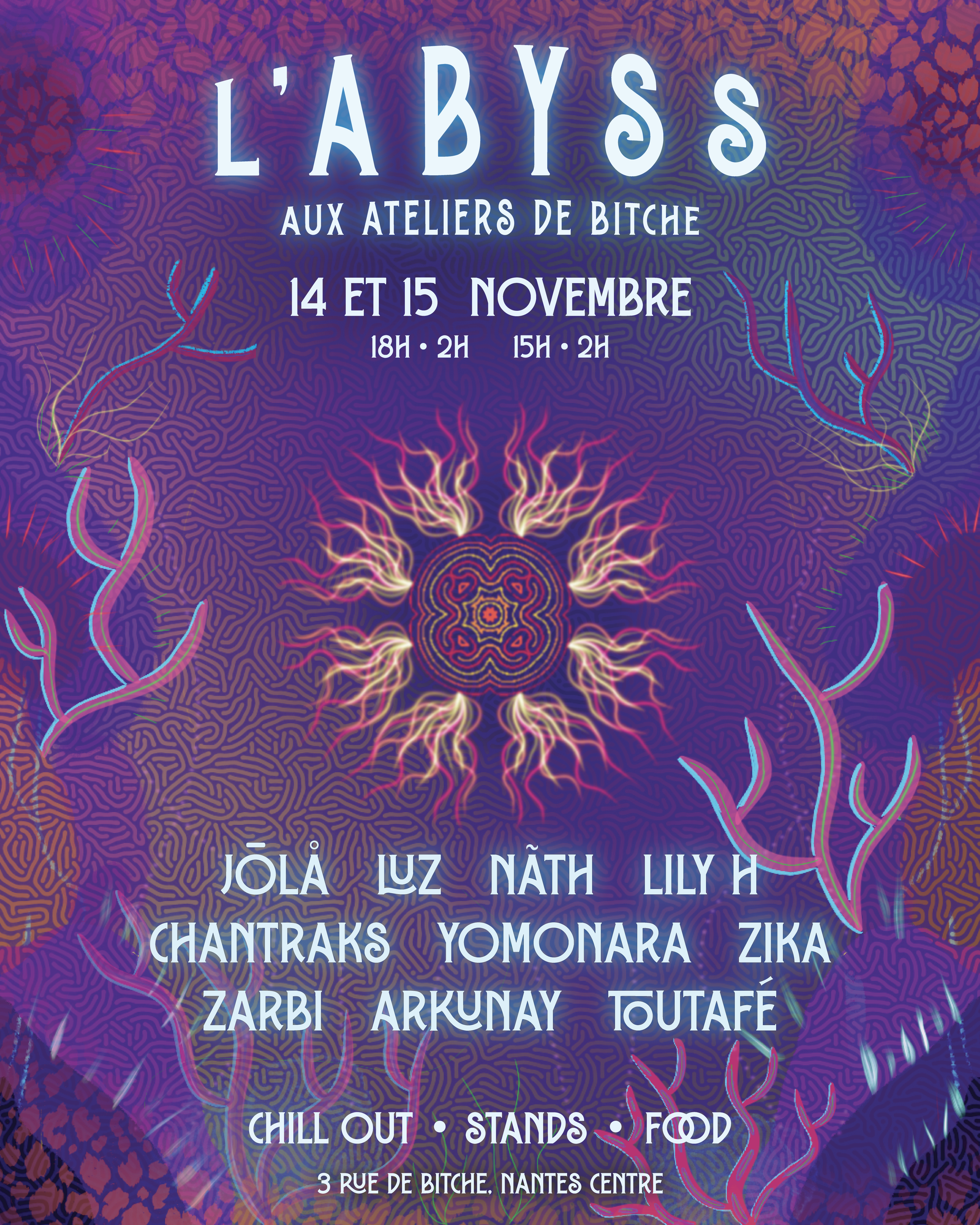 « Tous les événements L’ABYSS \\ Chill out / STANDS / FOOD / Kaldera Soirée \ 14 novembre de 19 h 00 min à 16 novembre de 2 h 00 min Navigation de l'événement « Block Frequencies #5 Atelier FANZINE / BiB Soutien ! animé par l'Interzone et le BiB Crew !! » + Google Agenda+ Exportation iCal Détails Début : 14 novembre 14+01:00 19 h 00 min Fin : 16 novembre 16+01:00 2 h 00 min Organisateur KALDERA