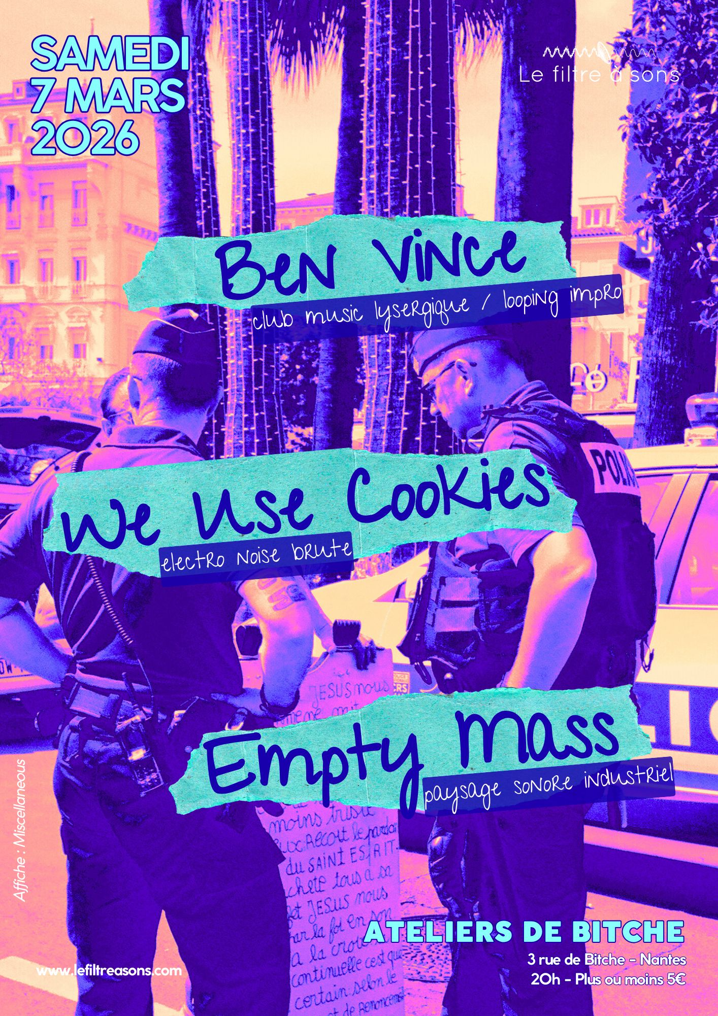 Solo live électronique de Simon Henocq, We Use Cookies façonne une réalité sonore à la fois rugueuse et captivante. Le son devient une matière brute, vivante et indomptée, explorant les tensions entre chaos et contrôle, pulsations électro-noise et ruptures radicales.